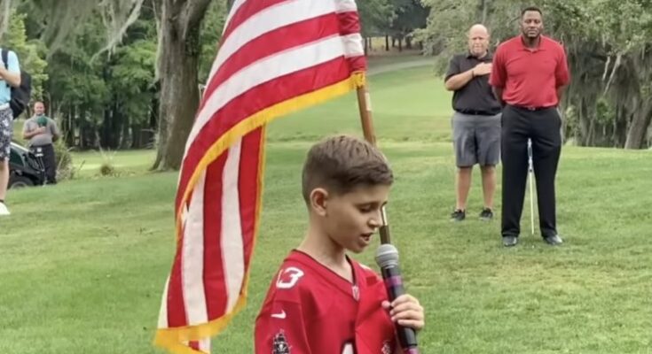 With every note, his presence grew—fusing youthful innocence with a sense of dignity far beyond his years. Golfers who were mid-swing froze in place. Silence spread. Hands moved to hearts.The magic wasn’t just in how perfectly he sang, but in how much feeling he gave each phrase. He held the powerful notes just long enough to let them echo.
